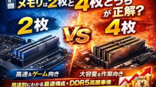 雑記 💾 メモリは「2枚」と「4枚」どっちが正解?用途別にわかる最適構成+DDR5高騰事情【2026年最新】 メモリは2枚と4枚どっちが正解?ゲーム・動画編集・仮想環境など用途別に最適なメモリ構成を解説。さらにAI需要で高騰するDDR5メモリの価格推移と今後の見通しもわかりやすく紹介します。 2025.12.24 雑記