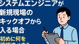 雑記 システムエンジニアは新規現場のキックオフで何を確認すべき?現場で使えるチェックリスト付き システムエンジニアが新規現場のキックオフで必ず確認すべき項目をわかりやすく解説。プロジェクト目的、役割分担、スケジュール、制約条件、ドキュメント管理、テスト方針、運用・移行の確認ポイントまで、現場で使えるチェックリスト付きで紹介します。 2025.12.10 雑記
