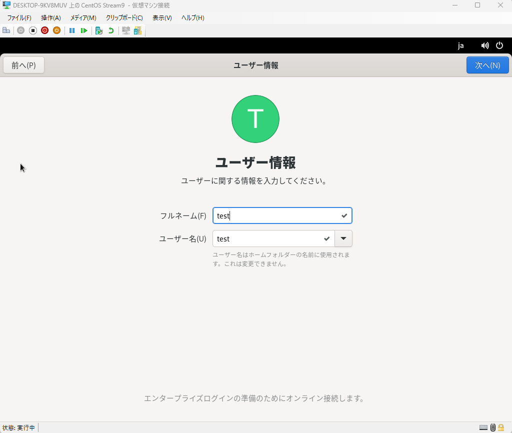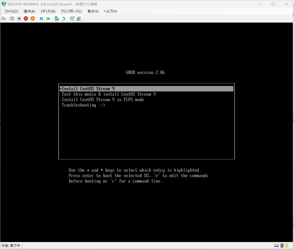 1. VM を起動 → 画面で Install CentOS Stream 9 を選択。