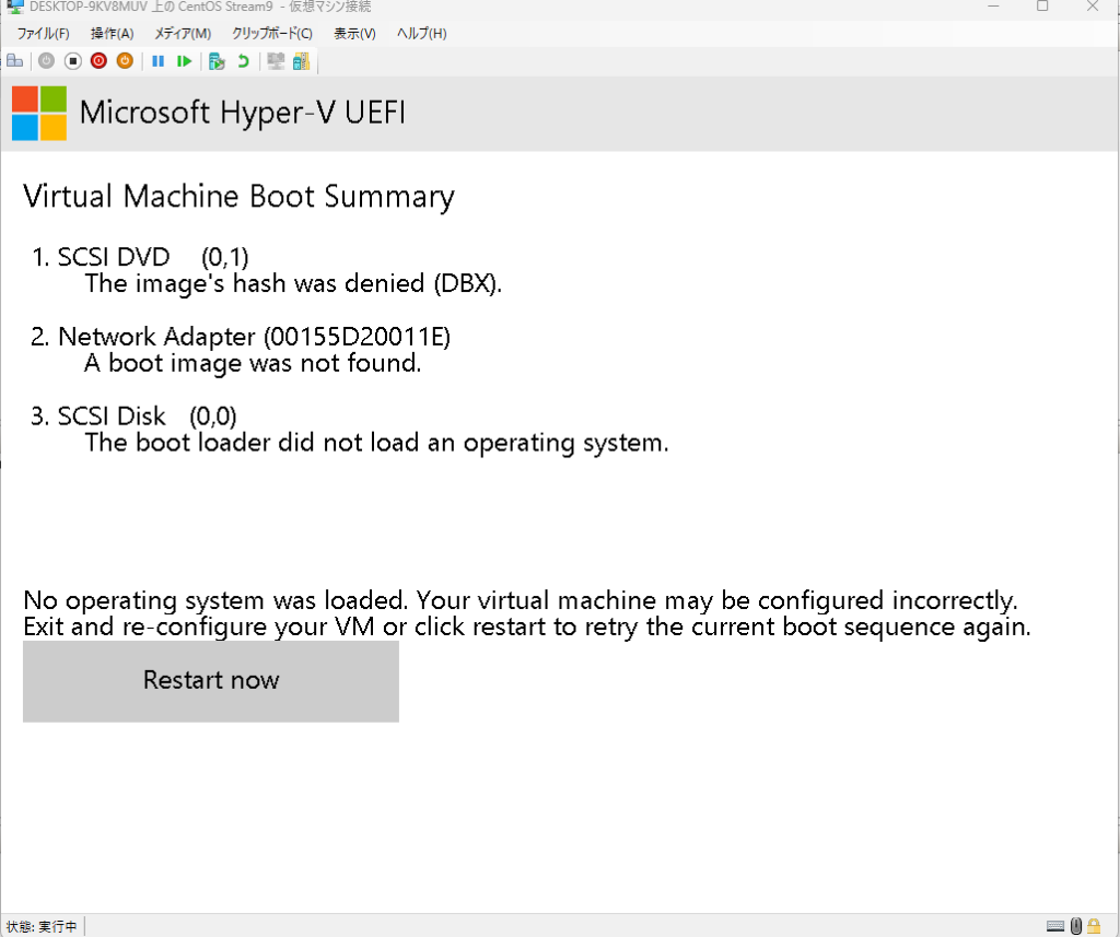 Secure BootMicrosoft UEFI Certificate Authority未設定の場合以下のエラーが出る。