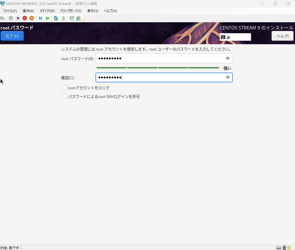 6. root パスワード / ユーザー作成 → インストール開始 → 完了後再起動。
