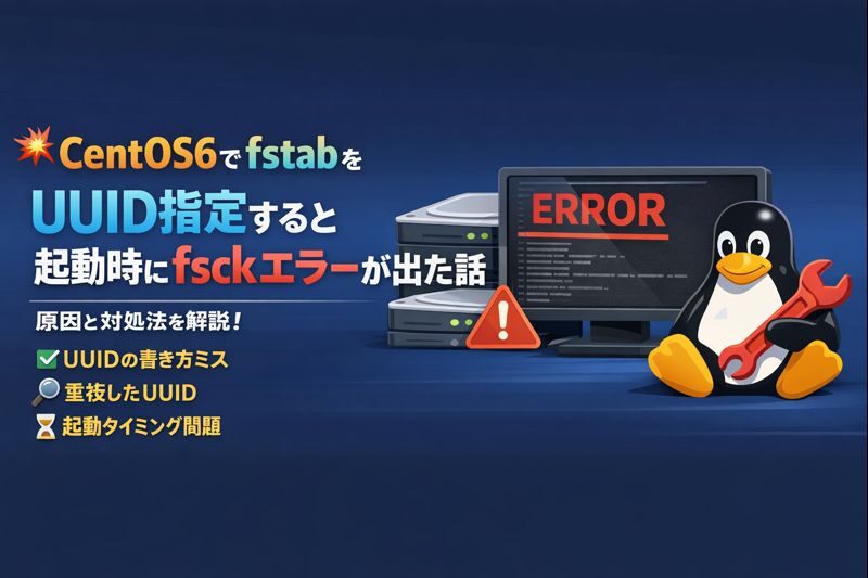 🐧 CentOS6でfstabをUUID指定すると起動時にfsckエラーが出た話(原因と対処まとめ)