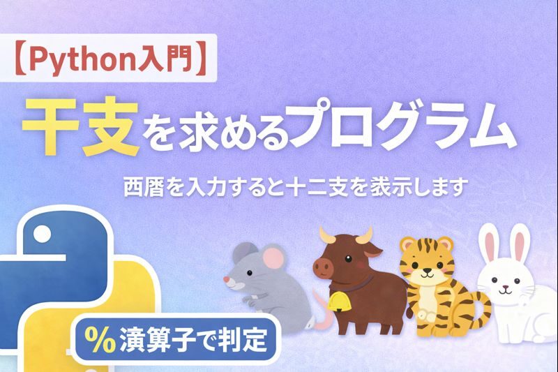 西暦を12で割った余りを使うことで、その年がどの干支に当たるかを判定できます。