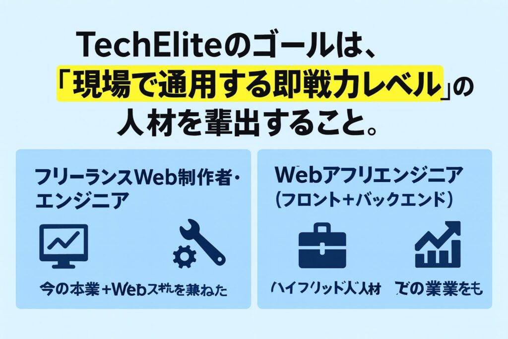 TechEliteのゴールは、**「現場で通用する即戦力レベル」**の人材を輩出すること。