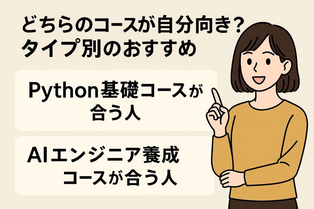- 「Python基礎コース」と「AIエンジニア養成コース」の内容