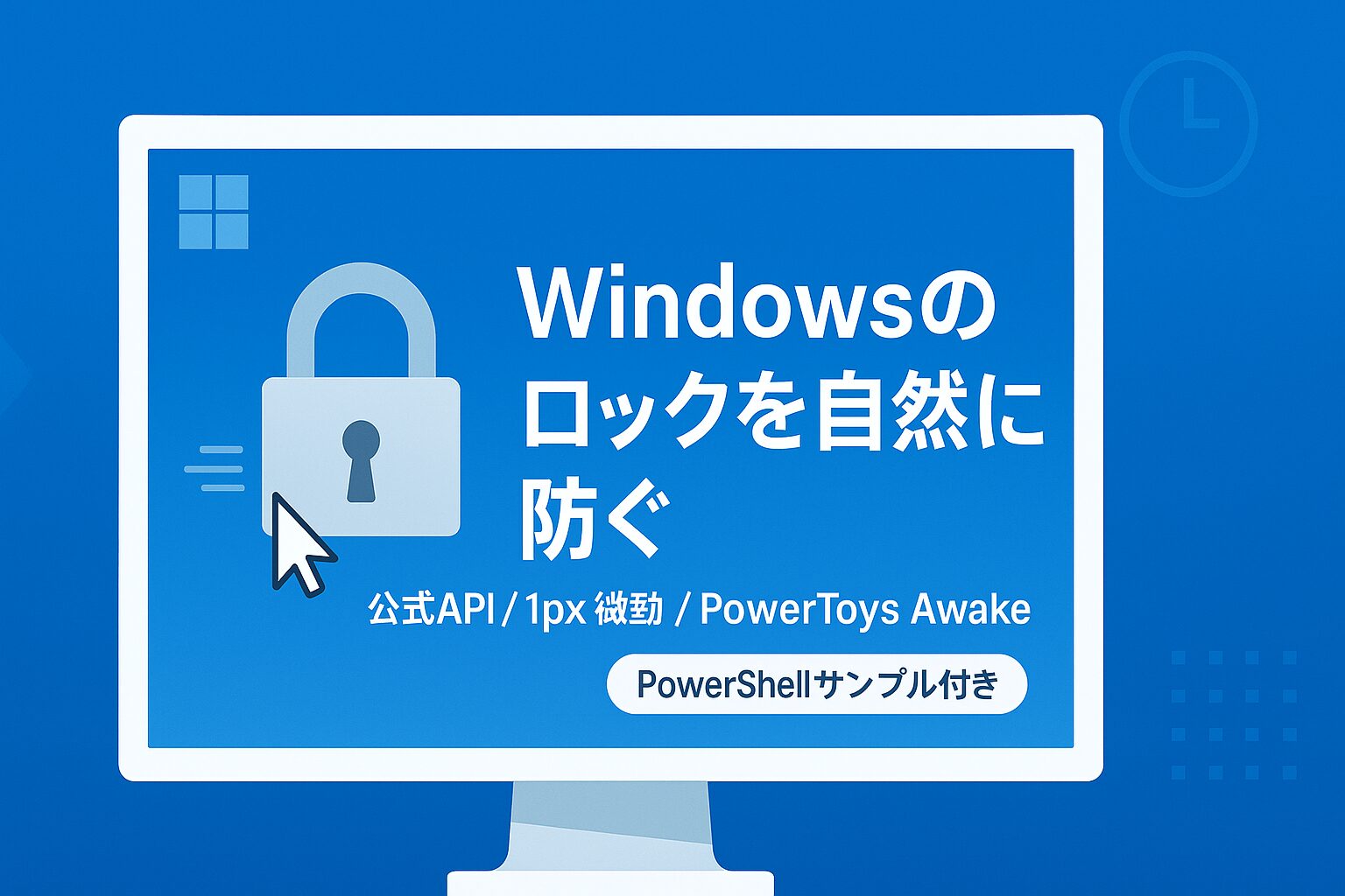 会議の画面共有中や長時間のログ監視中に勝手にロックされるのを防ぎたい。ただし、不自然にマウスが動くのは避けたい——そんなニーズに向けて、公式寄りの方法→軽微なマウス微動→GUIツールの順で解説します。どれもカンタンに試せます。